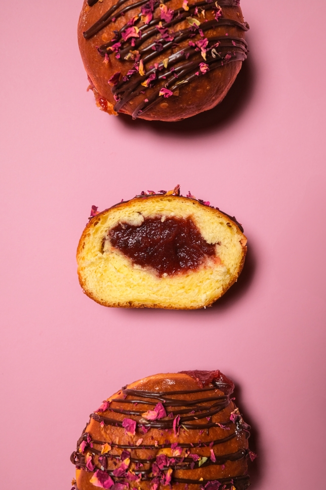 Każdy pączek przygotowujemy ręcznie, starannie nadziewamy i ozdabiamy. Pączek jest pyszny, puszysty i delikatny. Oblany delikatnie czekoladą i posypany płatkami róż - istne arcydzieło. Szlachetne ciasto kataifi, wypełnione tradycyjnym nadzieniem z różą — dużo nadzienia, dużo słodkości i przyjemności! Zasmakuj się w polskiej tradycji!